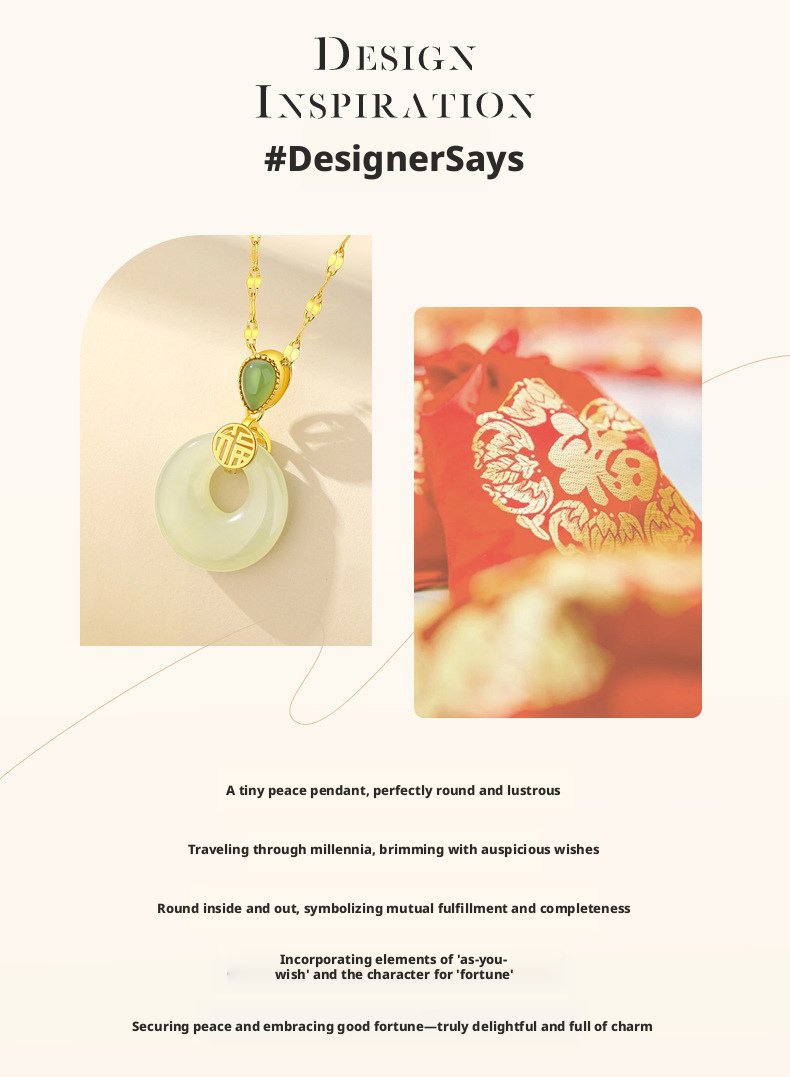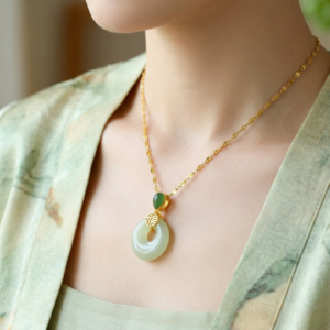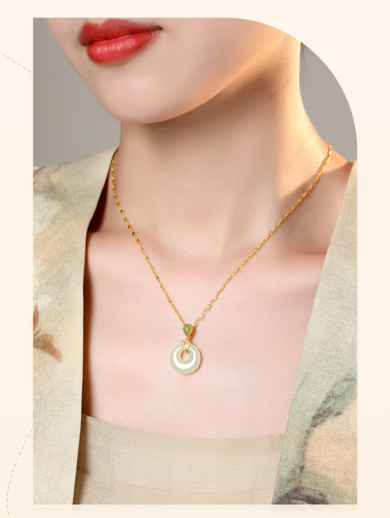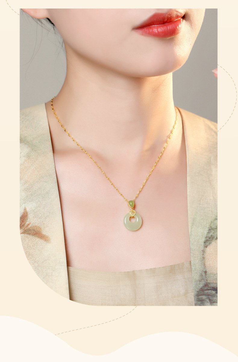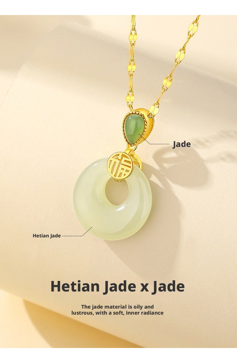 Crafted with natural Hetian Jade, this necklace features classic Oriental cultural meaning, representing sincere wishes for peace, calm energy, and gentle blessings for daily wear and gifting.