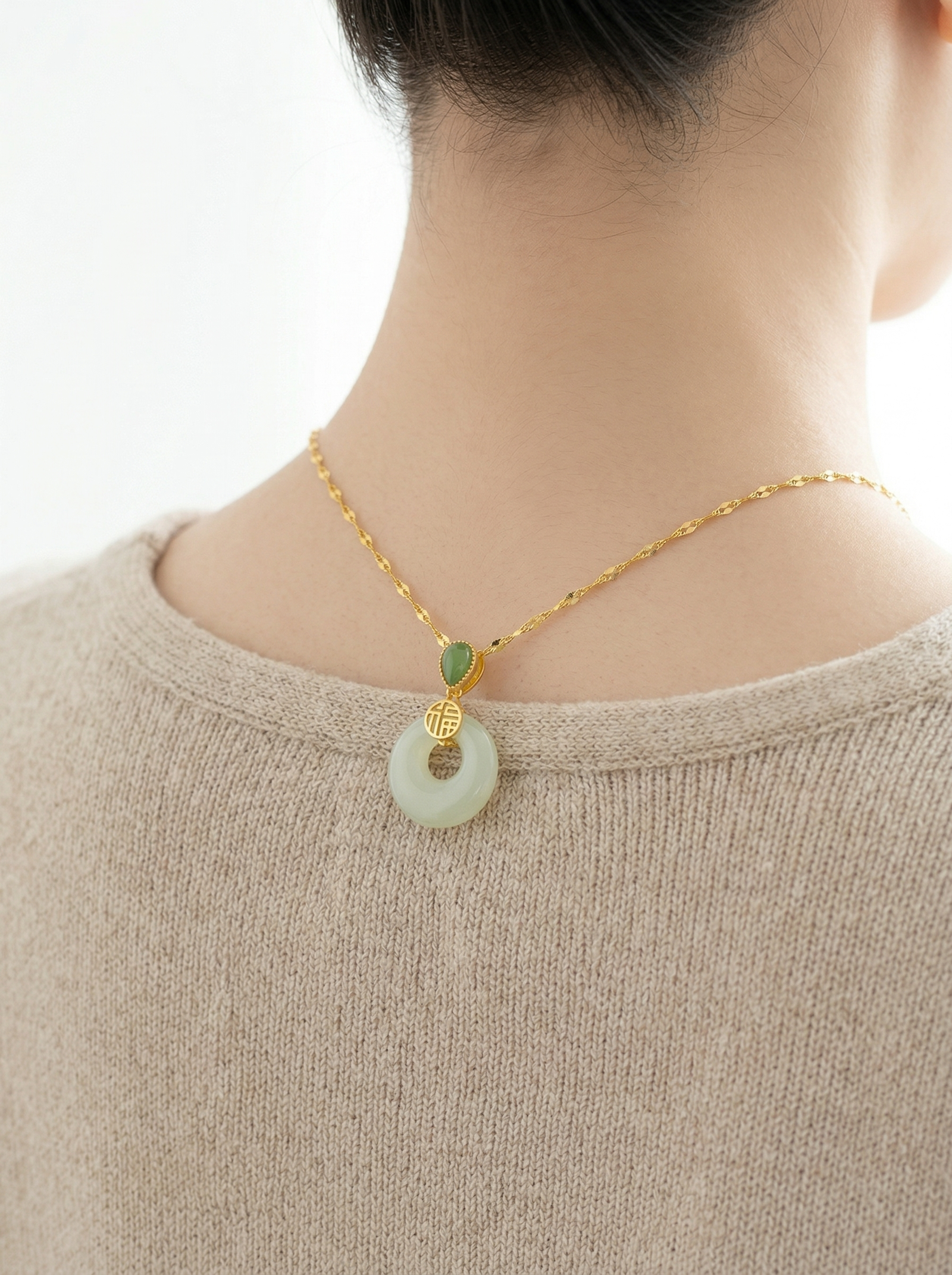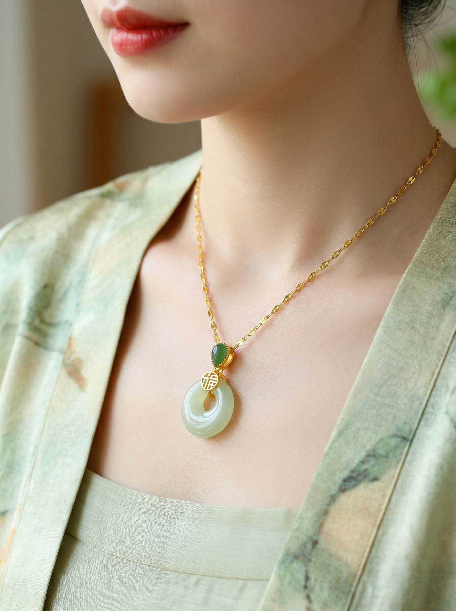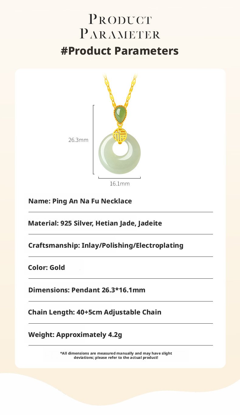 Crafted with natural Hetian Jade, this necklace features classic Oriental cultural meaning, representing sincere wishes for peace, calm energy, and gentle blessings for daily wear and gifting.