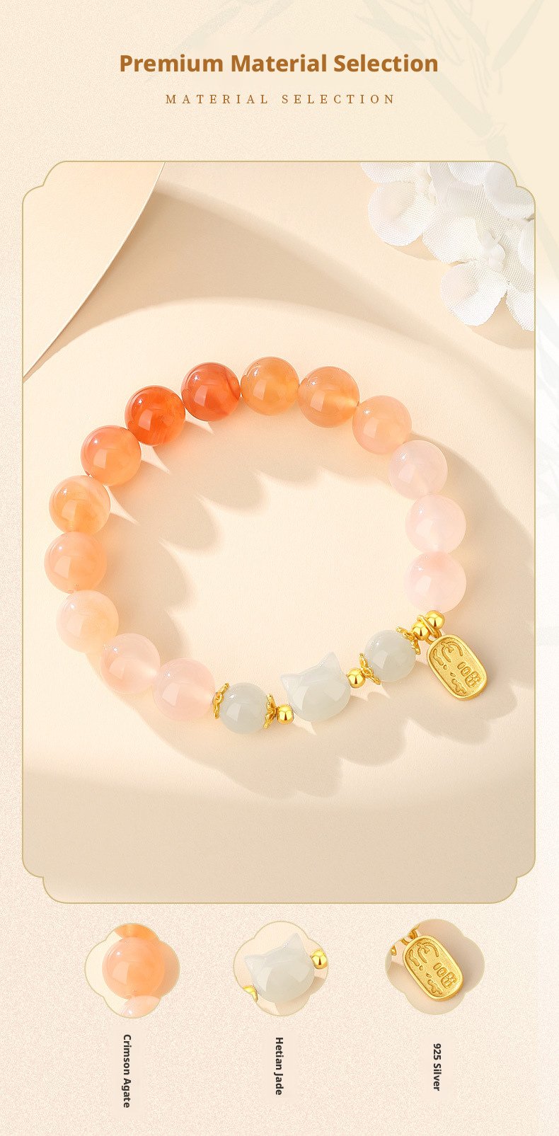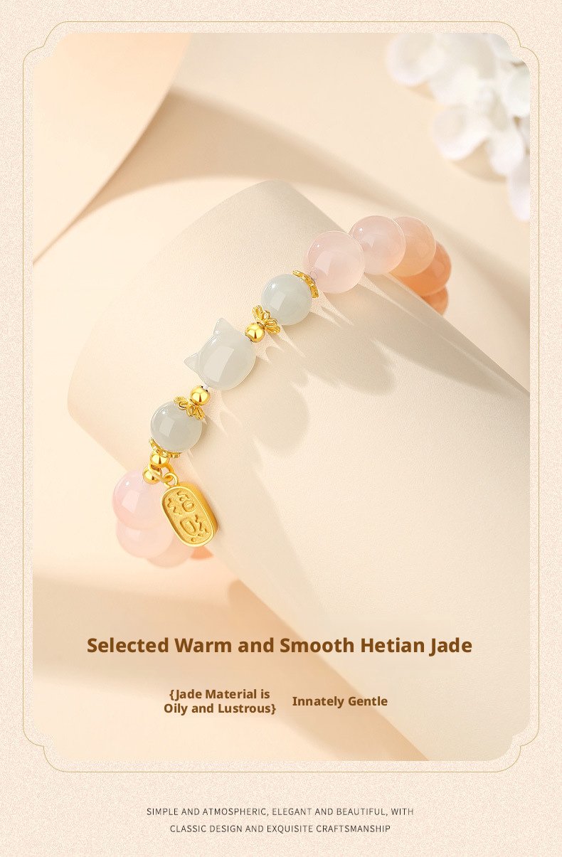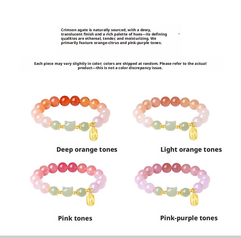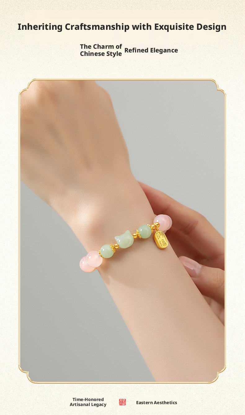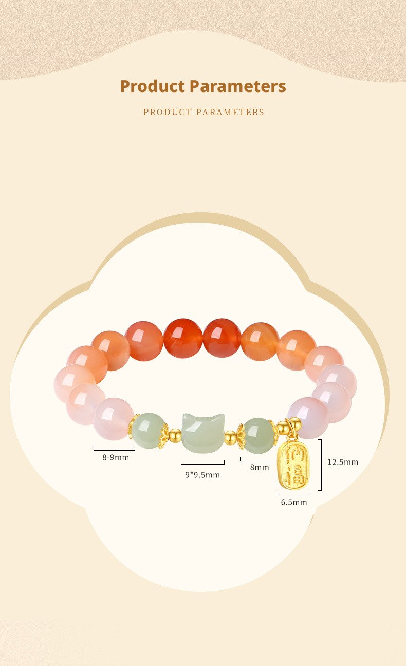 Featuring a delicate cat charm with natural crimson carnelian, this piece carries traditional Oriental meaning—crafted as a heartfelt symbol of warm blessings and gentle positive energy for daily wear or gifting.