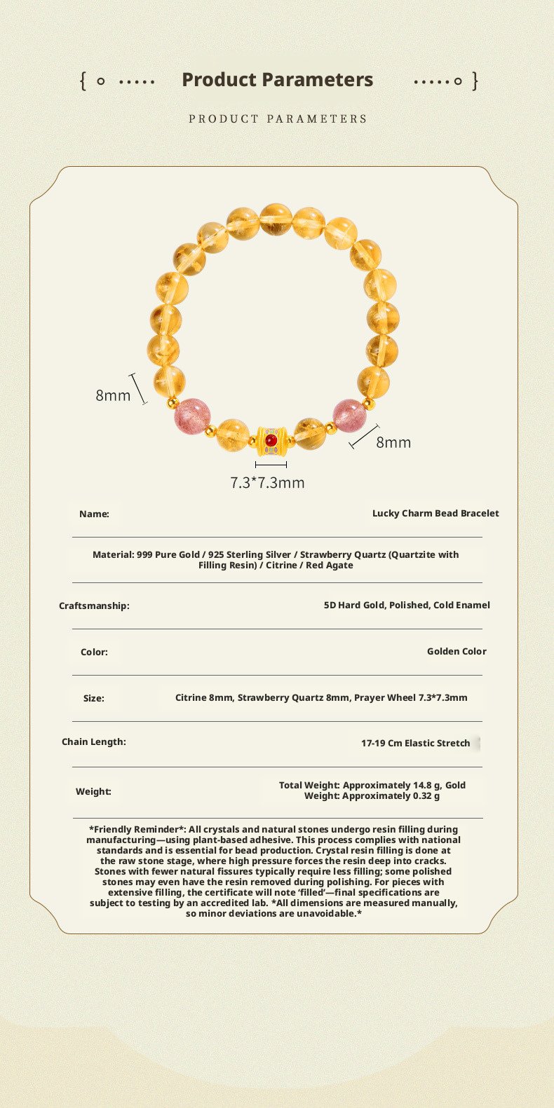 Sterling Silver Citrine Lucky Ball Bracelet | Good Fortune & Protection Charm