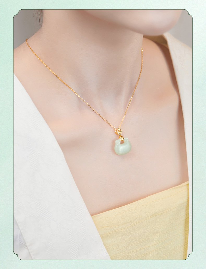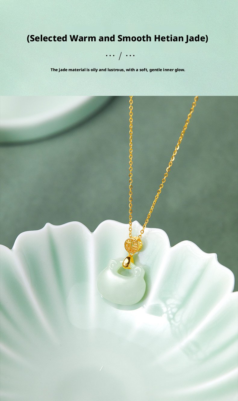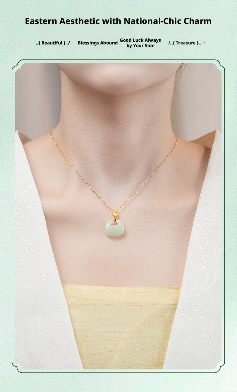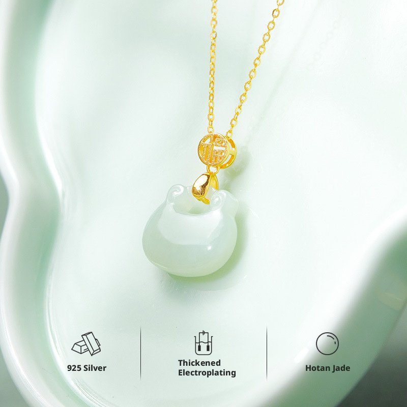 Oriental Fortune Tag Sterling Silver Bracelet | Natural Hetian Jade & White Chalcedony Peace Disc Symbol