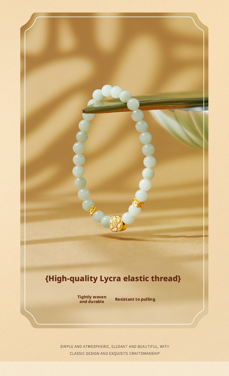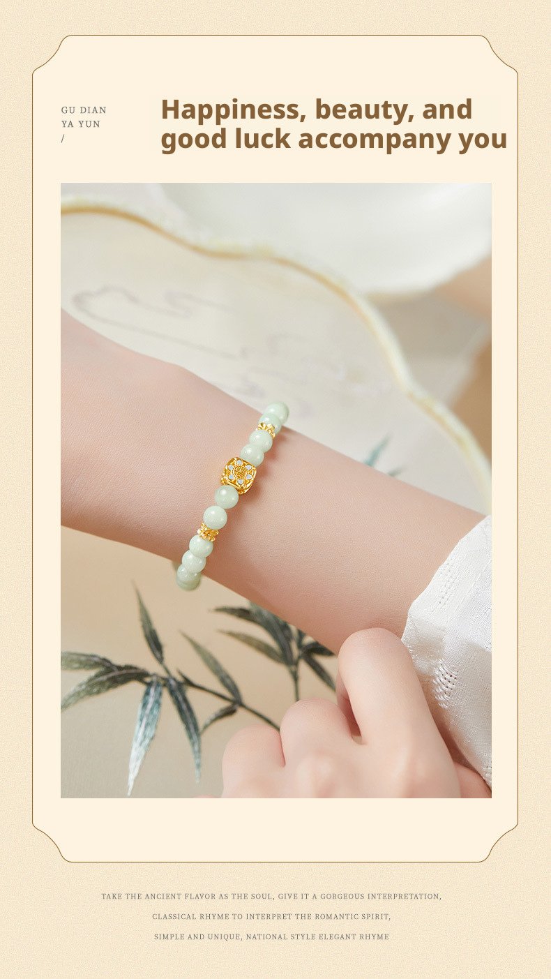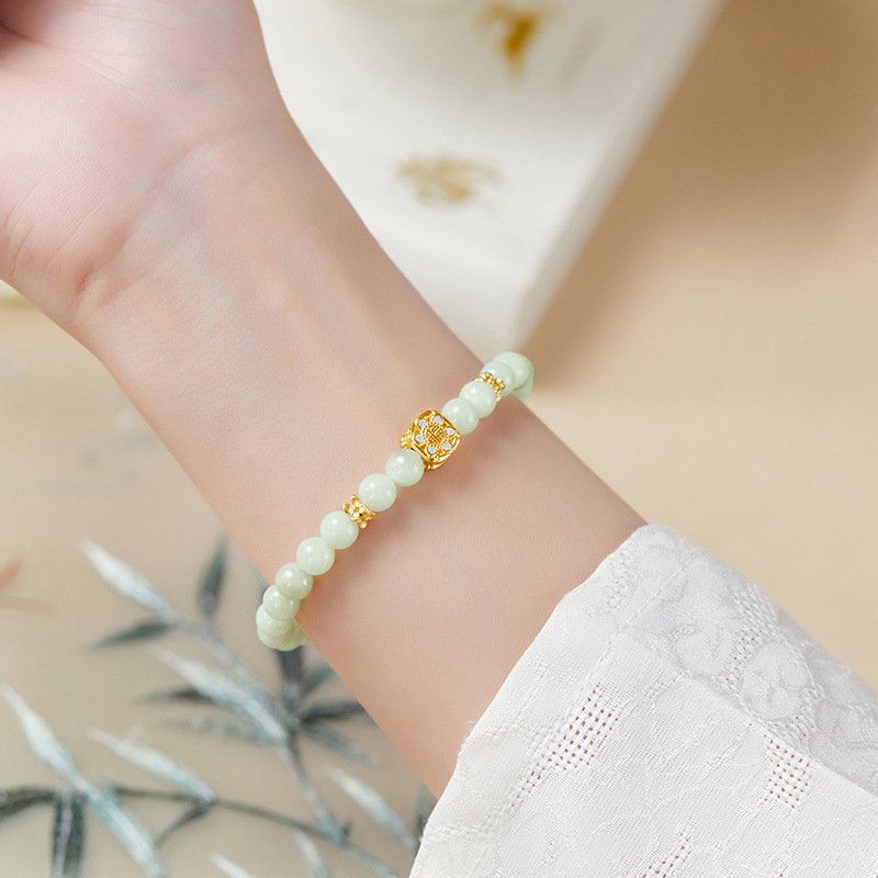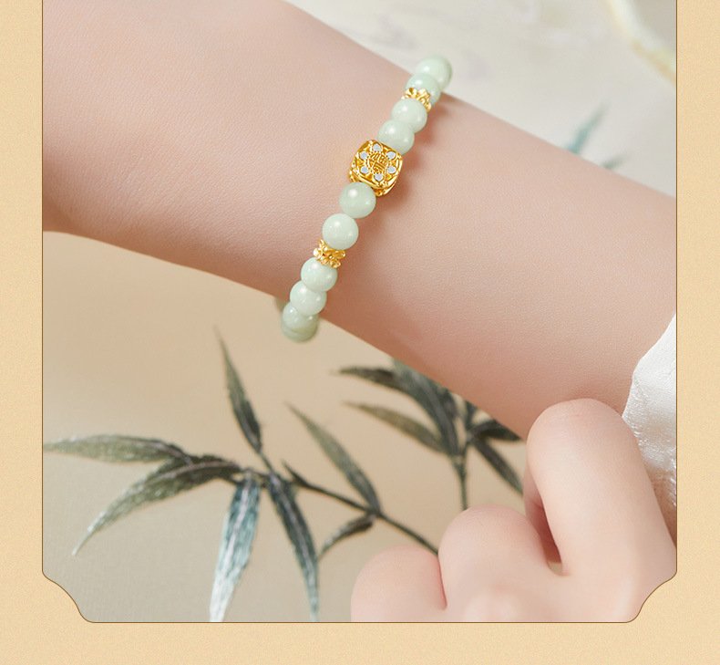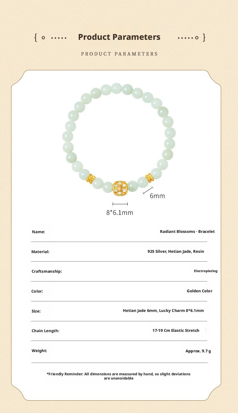 This elegant sterling silver bracelet features a traditional Oriental fortune tag, natural Hetian jade, and a classic white chalcedony peace disc—crafted as a timeless symbol of peace, calm energy, and heartfelt cultural blessings for daily wear or gifting.
