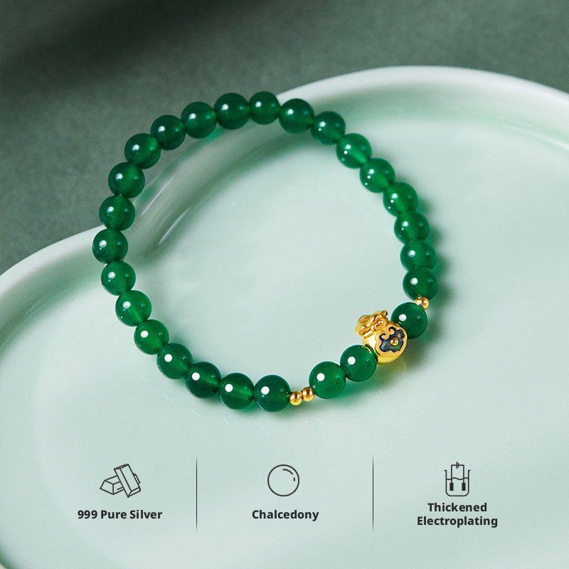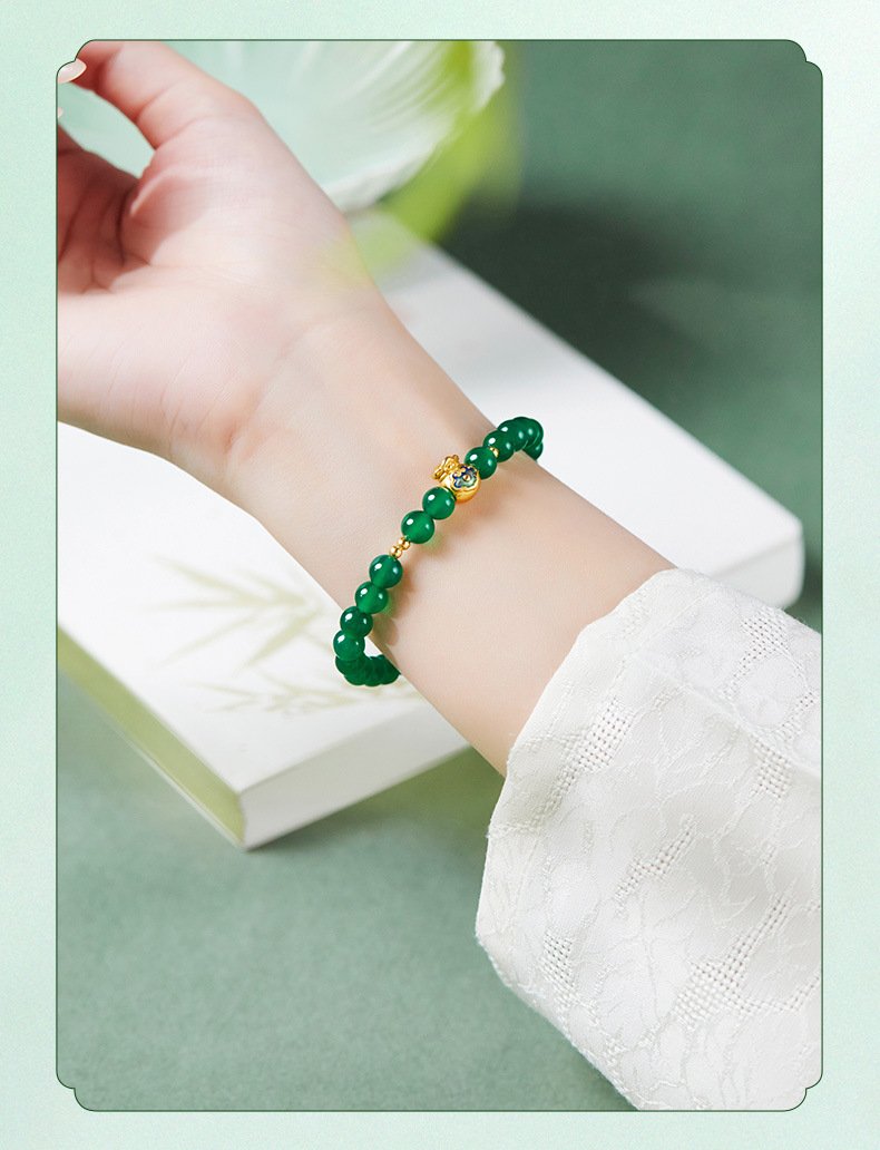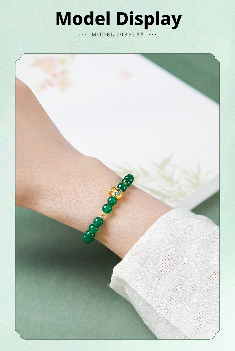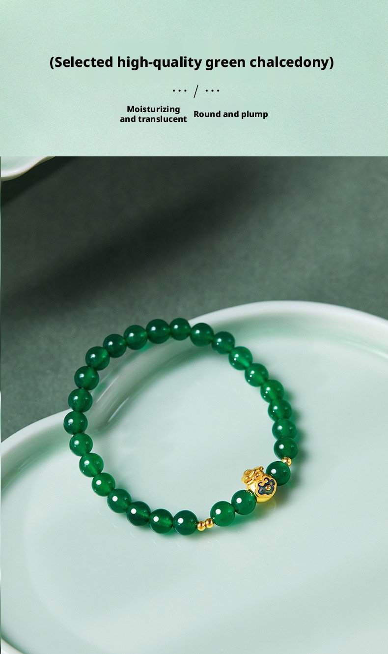 Green Chalcedony Beaded Bracelet, Eastern Symbol of Gentle Blessing for Women