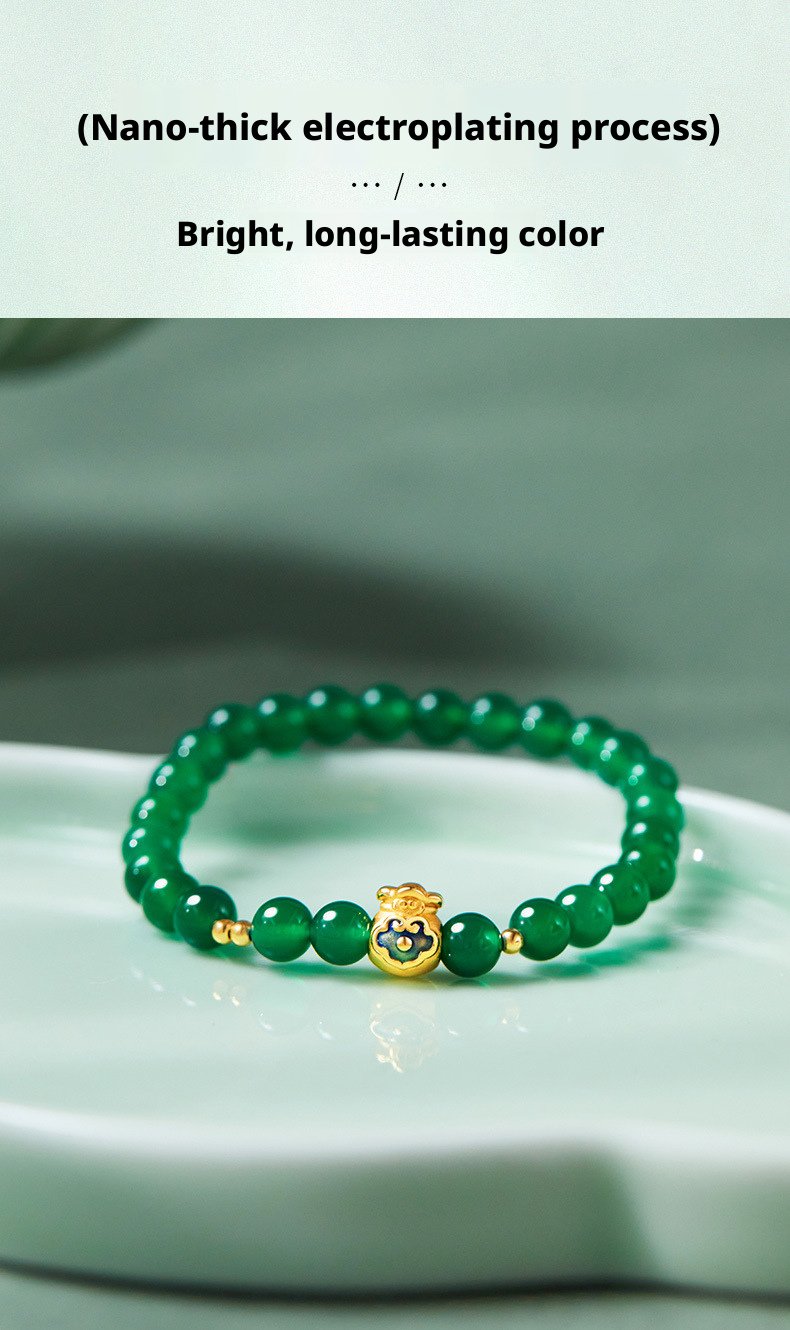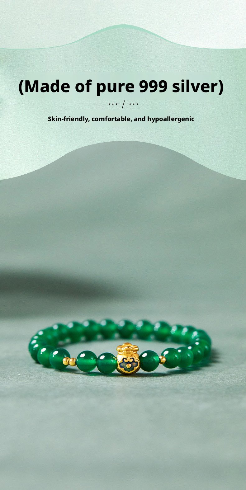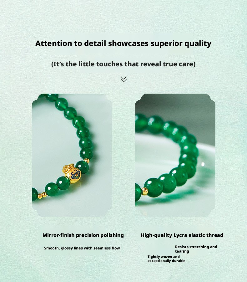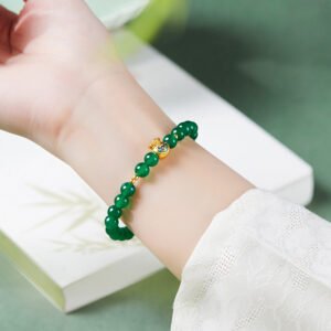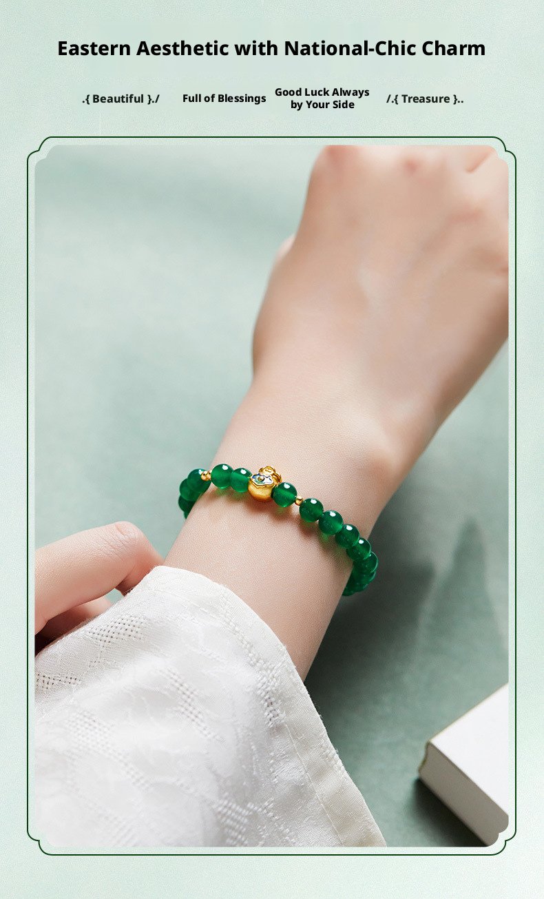 Green Chalcedony Beaded Bracelet, Eastern Symbol of Gentle Blessing for Women