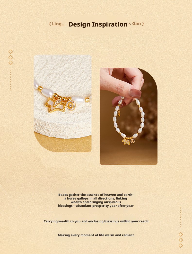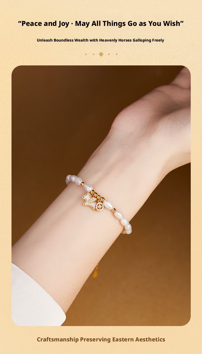 Featuring elegant cultured pearls, this bracelet celebrates the Year of the Horse with traditional heartfelt symbols of peace, warm blessings and gentle good fortune for daily wear and gifting.